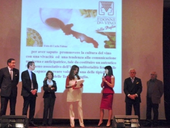 A Milano, il 24 maggio 2013, presso il Centro Congressi di via Corridoni, l’Associazione Regionale Pugliesi di Milano ha consegnato il prestigioso Premio “Ambasciatore di Terre di Puglia” a Le Donne del Vino della Puglia con la seguente motivazione: “Per aver saputo promuovere la cultura del vino con una vivacità ed una tendenza alla comunicazione moderna e anticipatrice, tale da costituire un autentico fenomeno associativo dell’imprenditorialità femminile capace di creare Valore da una delle tipicità delle Terre di Puglia”.