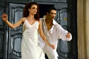 Visioni come quelle che il vecchio, delirante Carlo Gesualdo avverte negli ultimi giorni di esistenza terrena, visitato dai fantasmi delle proprie vittime, nella Maria di Venosa di Francesco D’Avalos, lavoro provocatorio e visionario a sua volta, che vive a Martina Franca un significativo debutto italiano a vent’anni dalla prima esecuzione londinese, accettando la sfida di una prima, difficile versione scenica.