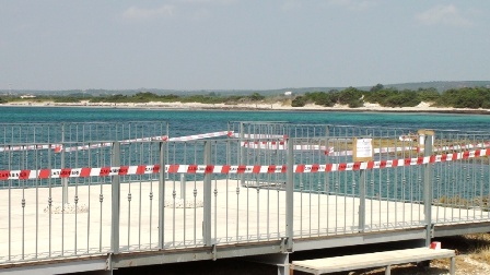 della Compagnia di Campi Salentina hanno eseguito un decreto di sequestro preventivo del 19 scorso, emesso dal G.I.P. dott. Brancato su istanza del P.M. dott.ssa Guglielmi, di una piattaforma in legno e metallo posta in prossimità del mare in località Punta Prosciutto di Porto Cesareo.