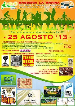 Apulia Actuiva ASD, sin dalla sua nascita, si mostra attenta alle esigenze del territorio e alla tematica della valorizzazione del patrimonio naturalistico e culturale dell’area orientale della provincia di Taranto. Dopo i tour alla scoperta di Manduria e Grottaglie e la ciclo-escursione nel “Bosco dei Cuturi”, l’associazione promuove “Bike ‘n live”, la one-night per salutare l’estate con allegria, ma senza dimenticare le tematiche di rilievo.