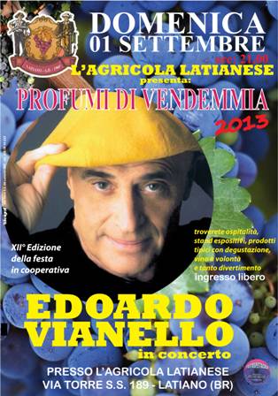 Si svolgerà domenica prossima 1° settembre, a partire dalle ore 20, la dodicesima edizione della festa sociale della coop. L’Agricola Latianese, denominata “Profumi di Vendemmia”.