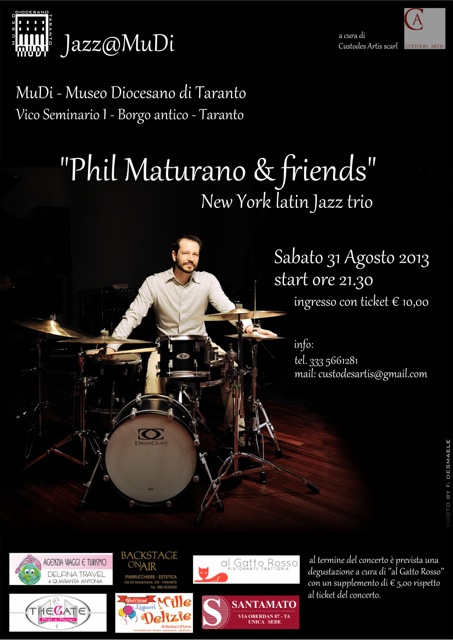 dedicato alla musica jazz e quest’anno il Museo Diocesano di Arte Sacra di Taranto ospiterà il concerto di uno dei migliori batteristi al mondo. La Custodes Artis s.c.a.r.l. è infatti lieta di annunciare per sabato prossimo 31 agosto il concerto “Phil Maturano & friends”, New York latin Jazz Trio.