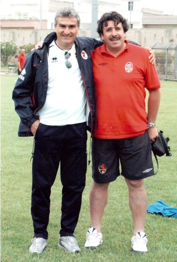Inoltre, il coordinatore del Maruggio City, Giuseppe Pastorelli (che vediamo nela foto insieme all’ex calciatore del Bari, Vincenzo Tavarilli), ha elaborato un programma di lavoro che prevede un centinaio di esercizi diversi, sia individuali che di gruppo, per insegnare le basi tecniche ai ragazzi e per far si che loro possano diventare dei bravi calciatori.