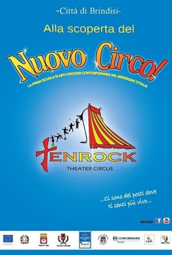 circensi contemporanee del sud Italia per una grande occasione ludica, sportiva, pedagogica e formativa.Il progetto pilota “Scuola di arti circensi Tenrock Theather Circus” di Brindisi nasce infatti in attuazione del progetto Start-Up Tenrock, nel quadro della sovvenzione globale “Piccoli Sussidi” P.O. Puglia FSE 2007-2013, con la collaborazione del Comune di Brindisi e delle partnership di Confcooperative di Brindisi, Consorzio “Madre Teresa di Calcutta”, cooperativa sociale “Giocartacli” e C.S.E.N. (Centro sportivo educativo nazionale (comitato provinciale di Brindisi).