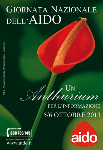 Nazionale di informazione e autofinanziamento, giunta alla XII edizione e promossa dall’ A.I.D.O. - Associazione Italiana per la Donazione di Organi, Tessuti e Cellule. Stefano D’Orazio è il testimonial della nuova campagna d’informazione e sensibilizzazione di A.I.D.O. che per il dodicesimo anno rinnova l’appuntamento con la giornata nazionale “Un Anthurium per l’informazione”.I volontari dell’A.I.D.O. saranno presenti in oltre 1.500 piazze per incontrare i cittadini, distribuiranno materiale informativo, dare loro informazioni sull’importanza della donazione, come valore sociale e come opportunità per salvare la vita a chi non ha altre possibilità di sopravvivenza e offrire piantine di Anthurium andreanum per finanziare nuove campagne di sensibilizzazione e per la ricerca sui trapianti.