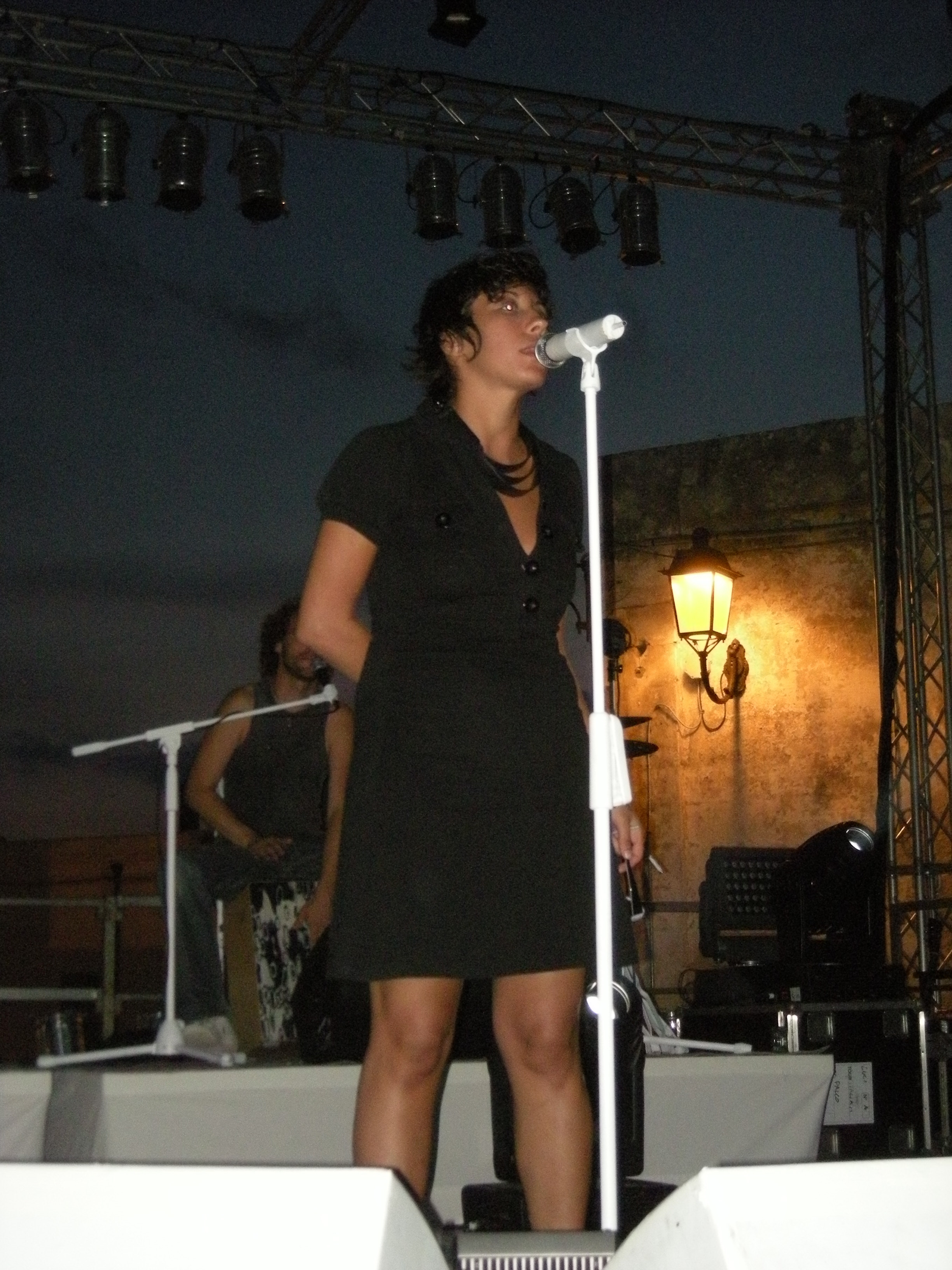 Son passati mesi da quella fredda sera e nel frattempo la timida ragazza ha saputo conquistarsi con i suoi virtuosismi vocali un’ampia fetta di pubblico,tanto da risultare la vincitrice morale di Sanremo con la permanenza in classifica da ben 25 settimane del brano “Come foglie”.Arrivo nella piazza ancora semideserta verso le 20 e m’avvicino al palco “incorniciato” sullo sfondo del castello mentre la principessa Malika prova, facendo echeggiare soavemente la sua voce come il canto d’un pavone al tramonto, come il suono emesso dal gabbiano Jonathan Livingstone in uno dei suoi voli pindarici.