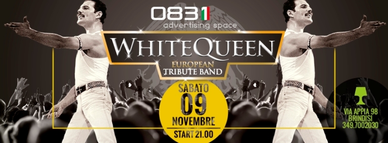 Atmosfere, ambientazioni e musica in puro stile inglese, sabato 9 novembre allo 0831 advertising space di Brindisi. Sì parte alle 21,30 un ricchissimo buffet in stile pugliese e poi la grande musica degli White Queen nota tribute band conosciuta ormai in tutta Europa con i loro “the Miracle tour 2013”. Amanti del rock, dei Queen e del grande Freddy Mercury, potranno trascorrere una serata affascinante e coinvolgente all’insegna del puro divertimento.