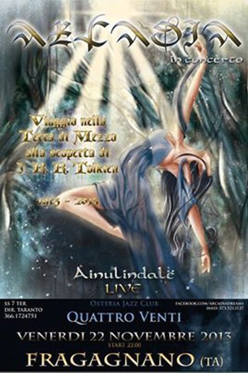 conosciuto sia per la sua ottima cucina che per le serate di buona musica che ogni anno ospita, sarà il palcoscenico di una nuova data dello spettacolo del gruppo musicale Arcadia, combo della provincia di Taranto che porta in scena il suo nuovo disco "Ainulindalë", che in lingua elfica significa "La musica degli Ainur", oltre ad essere il primo capitolo del libro di Tolkien "Il Silmarillion". E sarà infatti completamente dedicata a John Ronald Reuel Tolkien l'intera serata, in occasione di una ricorrenza storica molto importante, infatti quest'anno ricorre il 40° anniversario della scomparsa del grande professore di Oxford, scomparso il 2 settembre 1973.