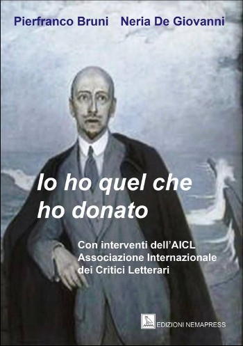 Pierfranco Bruni e Neria De Giovanni dal titolo: “Io ho quel che ho donato”, edito dalla Casa editrice Nemapress, con contributi di : Emanuela Forgetta per la Catalogna, Stefan Damian per la Romania, Arjan Kallco per l’Albania, Andrea Guiati per gli Stati Uniti d’America, André Ughetto per la Francia, Valentina Piredda per l’Austria, (Componenti dell’Associazione Internazionale dei Critici Letterari), sarà presentato ufficialmente, per i 150 anni della nascita di D’Annunzio, (Pescara, 12 marzo 1863 – Gardone Riviera, 1º marzo 1938) alla Fiera del Libro di Roma il prossimo 7 dicembre.
