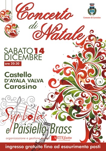 di rappresentazioni musicali in provincia.Il Comune di Carosino, in collaborazione con la Artefatto Servizi Culturali, a tal proposito, dà il 'la' al periodo delle festività con uno speciale concerto che avrà luogo nella suggestiva e caratteristica cornice rinascimentale del Castello d'Ayala Valva di Carosino, già teatro di numerosi eventi estivi di successo approntati dalla medesima società di Cosetta Giordano.