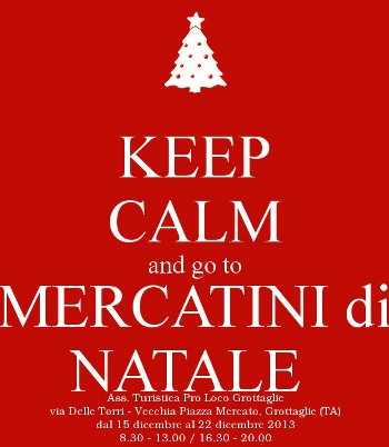 Piazza Mercato sita in via Delle Torri a Grottaglie, verrà inaugurato il Mercatino di Natale, voluto dall'Ass. Turistica Pro Loco Grottaglie.“Siamo arrivati alla II° edizione – dichiara la Presidente della Pro Loco – ancora una volta l'intento è valorizzare un luogo che rappresenta la storia della nostra città”.