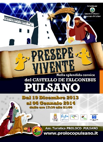 richieste e presenze registrate nelle precedenti date, il Presepe Vivente della Pro Loco di Pulsano riapre le proprie porte domenica 29 dicembre.Dalle ore 18 sarà possibile visitare quindi la caratteristica rappresentazione della natività allestita nella splendida cornice del Castello De Falconibus di Pulsano che vede la partecipazione di oltre trenta figuranti.