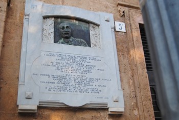 Mi chiedo come è possibile violare in tale forma e modo una targa ricordo di un tale uomo di cultura e poeta che tanto lustro ha dato alla nostra terra. Ma come è stato possibile autorizzare tale scempio? Ma ci rendiamo conto che stiamo dissipando ricchezze storiche che tutti ci invidiano? Capisco la necessità commerciali, capisco tutto, ma non quello di autorizzare tali scempi pubblicitari.