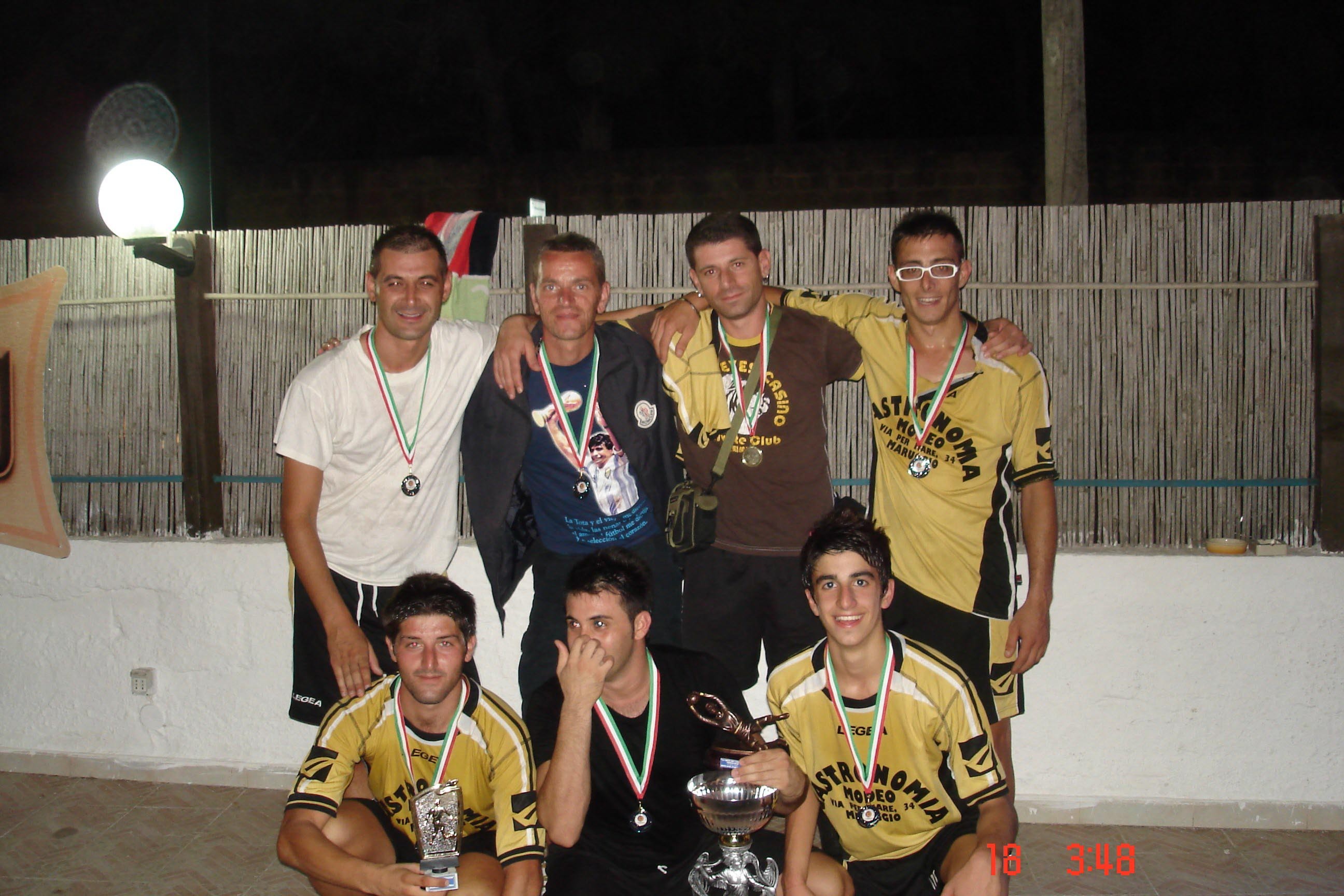 pizzeria “TOROLOCO” di Campomarino. Sono stati disputati ben cinque tornei notturni con la formula delle mini-partite da 10 minuti l’una.I tornei hanno avuto inizio alle 20 per concludersi alle 5 del mattino. Alcune centinaia di persone, ogni lunedì hanno assistito trepidanti alle fasi dei tornei, attendendo la finale per veder premiare le squadre ed i singoli calciatori.