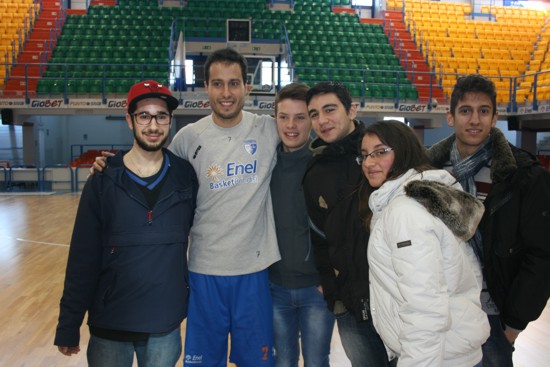 Grazie alla disponibilità del patron Massimo Ferrarese e alla signorilità di coach Luca Bucchi, gli studenti, al termine dell’allenamento, hanno poi potuto incontrare e rivolgere una serie di domande a tutti i componenti della squadra che, sinora, sta dominando il campionato di basket italiano: si è fregiata, per la prima volta nella sua storia, del titolo d’inverno e nel prossimo fine settimana parteciperà, pertanto, alla Final Heigh di Milano da prima della classe.