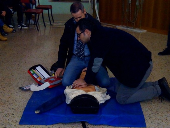 E’ poi intervenuto il medico Massimo Brunetti, che ha dapprima relazionato sul tema “La morte cardiaca improvvisa”, per poi effettuare una lezione pratica di primo soccorso, con una dimostrazione su un manichino del defibrillatore semiautomatico.