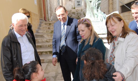 Molto entusiasmo e senso di tenerezza hanno anche suscitato nell’ambasciatore due bambine delle scuole elementari che, per puro caso, transitavano nei pressi del monumento dedicato a Giorgio Castriota Skanderbeg, dove nei secoli scorsi sono state edificate le prime case del paese.