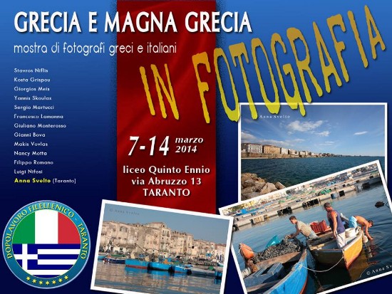 Insieme alla tarantina Anna Svelto espongono i fotografi Stavros Niflis, Kosta Grispou, Giorgios Meis, Yannis Skoulas, Sergio Martucci, Francesco Lamanna, Giuliano Monterosso, Gianni Bova, Makis Vovlas, Nancy Motta, Filippo Romano e Luigi Nifosi.