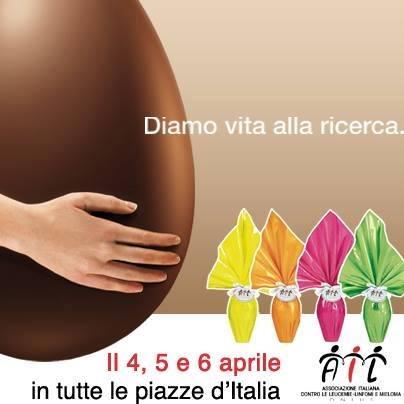 all’iniziativa “Diamo vita alla ricerca” promossa dall’AIL. Sino a domenica, l’associazione sarà presente in tutte le piazze italiane per la vendita delle uova di Pasqua e per la corrispondente raccolta di fondi.
