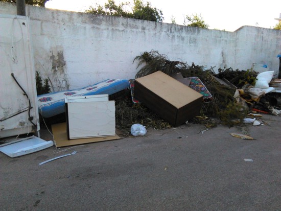 Complice anche il non ancora giornaliero servizio di raccolta dei rifiuti solidi urbani e l’appena avviato intervento di maquillage (annunciato nei giorni scorsi dal consigliere comunale al Decoro Urbano, Marco Barbieri), rifiuti di tutti i tipi (vecchie elettrodomestici o mobili, ma anche sfalci rivenienti dalla potatura) continuano a restare ammassati nei pressi dei cassonetti già colmi o lungo le strade di maggior transito, come si può vedere dalla foto.