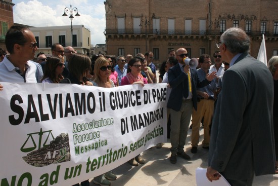 La mattinata era iniziata con il corteo degli avvocati (a dir la verità, ci si attendeva una presenza più folta), che, partito dal Tribunale, ha raggiunto piazza Garibaldi. Assente il sindaco Roberto Massafra (richiamato in ospedale per un’urgenza), è stato Gianluigi De Donno, peraltro anch’egli avvocato, a chiarire la situazione.