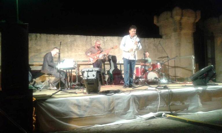 La favolosa cornice del giardino adiacente la chiesa di Santa Croce ha ospitato il concerto di “Fulvio Palese special 4et”. Fulvio Palese (sax), Pietro Vincenti (piano), Vincenzo Maurogiovanni (basso), Francesco Pennetta (batteria) hanno presentato il loro nuovo disco, The comics tune. Si tratta di un album pubblicato dall’etichetta internazionale Ululati/Tudobem di Lupo Editore. Un cd contenente nove brani, di cui otto frutto della penna del sassofonista racalino, leader della formazione.