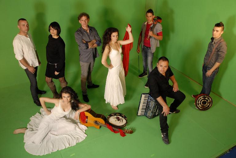 Durante l’esibizione, i salentini Zimbarìa (che vediamo nella foto) guidati da Rossano Ruggeri, ospitano Amina Diouf, di origini senegalese, che canterà “Lu rusciu de lu mare” in lingua wolof.