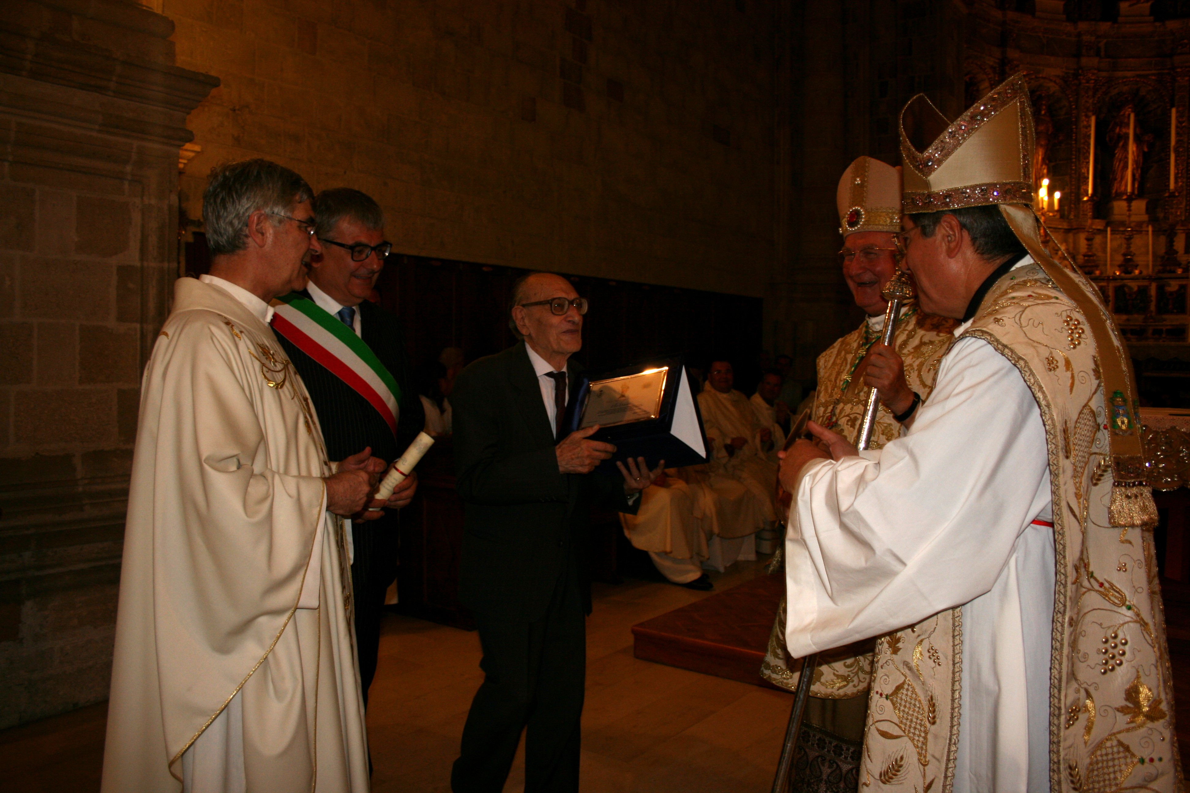La consegna della targa ha avuto luogo, in chiesa Madre, al termine della solenne celebrazione eucaristica presieduta dall’arcivescovo emerito di Cagliari, mons. Giuseppe Mani, e dal vescovo di Oria, mons. Vincenzo Pisanello.