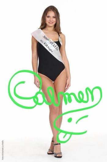 Carmen Caramia, la 19enne di Francavilla Fontana che rappresenterà la Puglia col numero 21 tra le ventiquattro concorrenti che parteciperanno alla finale di Miss Italia, in programma domenica prossima a Jesolo, condotta alle 21 da Simona Ventura in diretta su LA7: l’evento sarò trasmesso anche in streaming. Carmen è stata selezionata durante le selezioni regionali svolte in Puglia dall'agente regionale Mimmo Rollo, direttore artistico di uno spettacolo che ha strappato applausi in tutte le piazze in cui è andato in scena il musical d lui ideato dedicato ai destini incrociati di Enzo Mirigliani e Domenico Modugno. Un percorso di crescita che è servito anche a Carmen, che per la prima volta nella sua vita ha calcato le passerelle partecipando proprio a Miss Italia.