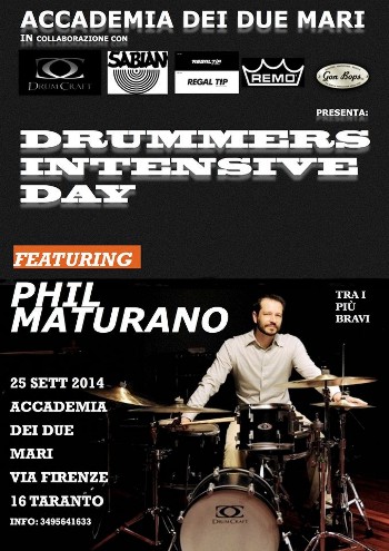 di Taranto si fregerà di accogliere uno tra i più quotati e richiesti batteristi-docenti del panorama musicale internazionale: Phil Maturano. L’eclettico musicista di origine argentina terrà una master class assai interessante incentrata su varie nozioni di tecnica batteristica e sull’approccio stilistico riguardante il latin jazz, genere musicale per il quale Maturano manifesta una naturale predilezione. Tutti coloro che frequenteranno questa imperdibile lezione conseguiranno un prestigioso attestato di partecipazione.Phil Maturano è un batterista dotato di estrema versatilità. Spazia con disarmante disinvoltura dal jazz al latin jazz, dal funk alla fusion. Il suo groove è alquanto poderoso e metronomico, puntualmente sostenuto da una tecnica impeccabile. Grazie al suo puro e cristallino talento ha l’opportunità di condividere palco e studio di registrazione con svariati musicisti di rango mondiale, quali: Maynard Ferguson, Scott Henderson, Sandro Albert, Sam Most, Billy Childs, Abe Laboriel, Emil Richards, Luis Conte, Don Menza, Andrei Kondakov, Dominique Di Piazza, solo per citarne alcuni.