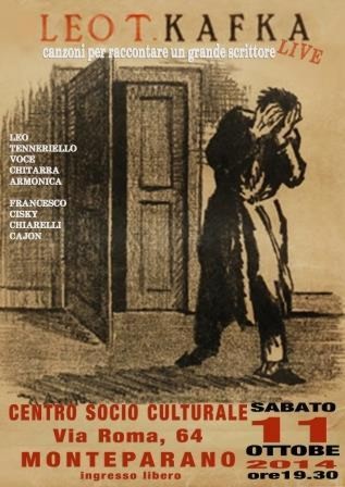 Sabato 11 ottobre ore 19.30 Leo Tenneriello presenterà uno spettacolo intitolato “Leo T. Kafka - canzoni per raccontare un grande scrittore”