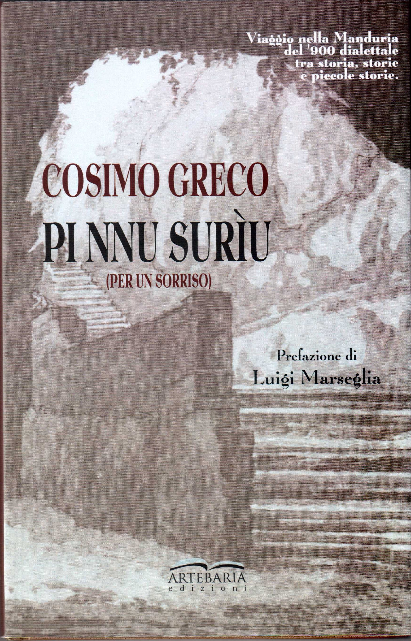 nnu surìu” (tradotto in italiano, “Per un sorriso”), edito da Artebaria. Opera che rappresenta il suo esordio nella narrativa in vernacolo.«Si tratta di un “viaggio” ideale in un percorso accidentato, effettuato tra le due metà del secolo passato, all’insegna di un trascorrere veloce di eventi, di luoghi, di figure e di atmosfere, sedimentati nel vissuto e proposti in un prelievo, talora divertito, di “storie e di piccole storie”, dall’oralità popolare» scrive Luigi Marseglia in premessa. «L’autobiografismo latente che attraversa la narrazione maschera la sua presenza proprio nell’atteggiarsi di quei prelievi, esercitati ora nelle forme del raccolto di costume e d’ambiente con la naturale freschezza d’immagini del bozzetto (“Turnu turnu a lla frescera pi nna posta ti rosari”; “A lla barbarìa”), ora in quella dell’evocazione favolistica (“Lu cantu ti Mesci Allocchiu”), ora nell’artificio della costruzione del comico in soluzioni narrative sintonizzare agli schemi dello scherzo e dell’arguzia popolana (“Simu ancora curciuli”; “La nunna Piacoci” e “Lu pezz’è capiddi”).