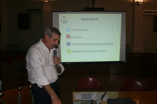 L’Amministrazione fa “luce” sul project financing sulla pubblica illuminazione. Alla vigilia della seduta del massimo consesso elettivo di domani (venerdì), al cui ordine del giorno è iscritta la richiesta di revoca del progetto firmata da un gruppo trasversale di ben 12 consiglieri (su un totale di 24), è stato organizzato un evento pubblico con l’obiettivo di illustrare il funzionamento e i vantaggi dei progetti di finanza e, in particolare, i contenuti di quello sul completamento e sulla gestione della rete della pubblica illuminazione presentato dall’azienda Mengoli di Galatina.