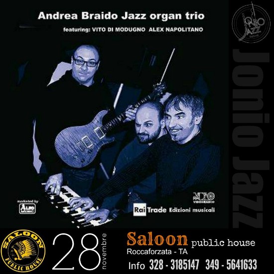 Venerdì 28 novembre, ore 21.30, il “Saloon Public House” di Roccaforzata ospiterà un trio d’eccezione formato da: Andrea Braido (chitarra), Vito Di Modugno (organo hammond), Alessandro Napolitano (batteria). Il famoso chitarrista trentino presenterà il suo disco intitolato “Andrea Braido Jazz Organ Trio”.