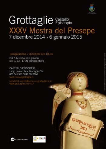 La 35esima Mostra del Presepe di Grottaglie è visitabile fino al 6 gennaio 2015 tutti i giorni ad ingresso libero, con i seguenti orari: 10.00 - 13.00 / 17.00 - 21.00.