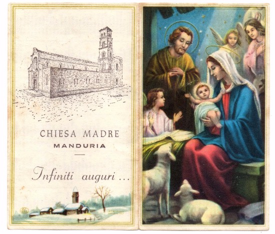 (****) Nell’immagine in alto è riprodotto un santino-calendarietto fatto stampare dalla Chiesa Madre di Manduria – Parrocchia SS.Trinità per l’anno 1970 (Collezione privata).