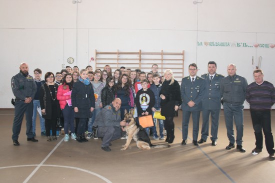 della legalità e, nel contempo, sensibilizzarli sul valore civile ed educativo della legalità economica.Con questi intenti, l’istituto comprensivo “Francesco Prudenzano” ha ospitato una delegazione di militari della Guardia di Finanza: il comandante della Tenenza di Manduria, ten. Daniele Meschini, il Luogotenente della Tenenza di Manduria, maresciallo Umberto Zappalà, l’appuntato scelto Andrea Resta e il maresciallo capo Fabio Grieco, entrambi Baschi Verdi del Comando Provinciale di Taranto, e l’appuntato scelto Vincenzo Mezzano. Con loro, autentica “star” della giornata, Abla, uno splendido esemplare di pastore tedesco, in forza al Nucleo delle Unità Cinofile di Taranto.