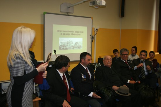Alla sezione di Manduria sono iscritti inoltre il veterano Leonardo Dinoi, classe 1919, e i bersaglieri in armi Armando Roberto e Leonardo Mangiulli, che erano presenti nell’incontro del “Prudenzano” e che vediamo nella foto insieme agli studenti della scuola.