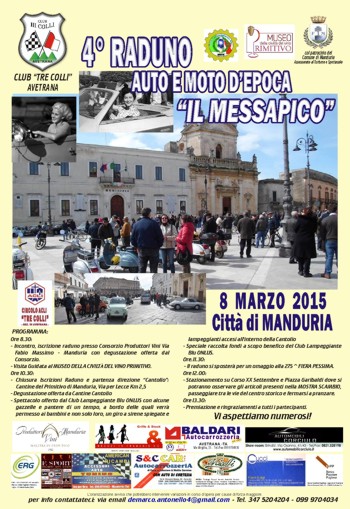 - Il raduno si sposterà per dare omaggio alla 275^FIERA PESSIMA - Manduria.