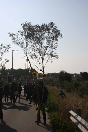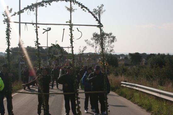 arcaici riti propiziatori diffusi in tutte le società agrarie. Nelle antiche civiltà e nelle culture cosiddette “primitive”, la pioggia è garanzia e simbolo di fertilità dei campi e della natura. Ovunque la pioggia sia un bene raro e prezioso, essa è circondata da particolare sacralità e occupa un posto centrale nella mitologia e nel sistema religioso.La secolare processione arborea di San Pietro in Bevagna, fatta rivivere nuovamente nella mattinata di ieri, è un rito che custodisce, intatto, l’aspetto devozionale e penitenziale del rito: riconoscendo il primato di Dio, Padre misericordioso, i fedeli continuano ad invocarne, con la preghiera e con il sacrificio (trasportando, ovvero, pesanti rami in spalla per circa 12 chilometri), la protezione delle colture. Non si invoca, in questo periodo