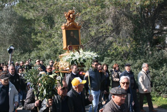 familiari, di strati sociali differenti, e tanti ragazzi: c’era il gruppo degli scout di Manduria, ma anche un gruppo di ragazzi di circa 10 anni che, in gruppo, hanno portato in processione dei piccoli rami. Ci sono i contadini, ma anche operai e professionisti. Un “popolo in cammino”, insomma, con il comune la Fede e la rinnovata richiesta “dell’acqua che disseta per la vita eterna”.«Quest’anno non chiediamo l’acqua per le nostre campagne: fortunatamente non è un’annata di siccità» ha affermato mons. Franco Dinoi, arciprete di Manduria. «C’è un’altra minaccia che incombe sulla nostra agricoltura: quella della Xylella Fastidiosa. Servirà anche la protezione di Dio per salvaguardare l’olivicoltura, una delle ricchezze della nostra terra.