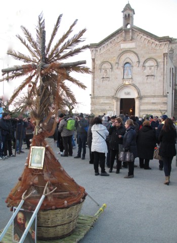 Dentro la cappella procede la liturgia cantata, fuori è già una festa di volti, voci, colori. Arrivano i primi gruppi di fedeli che recano gli “altarini”, di squisita fattura artigianale. Nella paziente cura con cui sono stati confezionati, oltre che nel sacrificio con cui verranno trasportati, a spalla, per dieci lunghi chilometri, si esprime una devozione ancora fortemente radicata nei confronti del Principe degli Apostoli.