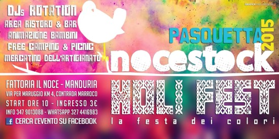 Il 6 aprile a Manduria, immersi in una splendida cornice naturale, si svolgerà l’evento clou della primavera per eccellenza, ossia l'holi fest la festa dei colori. Dopo essere partita dal cuore e dalla tradizione indiana celebrata come rito di benvenuto alla primavera, intesa come rinascita spirituale e aver fatto il giro di mezzo mondo, questa coloratissima festa arriva anche in Salento, alla Fattoria il Noce!