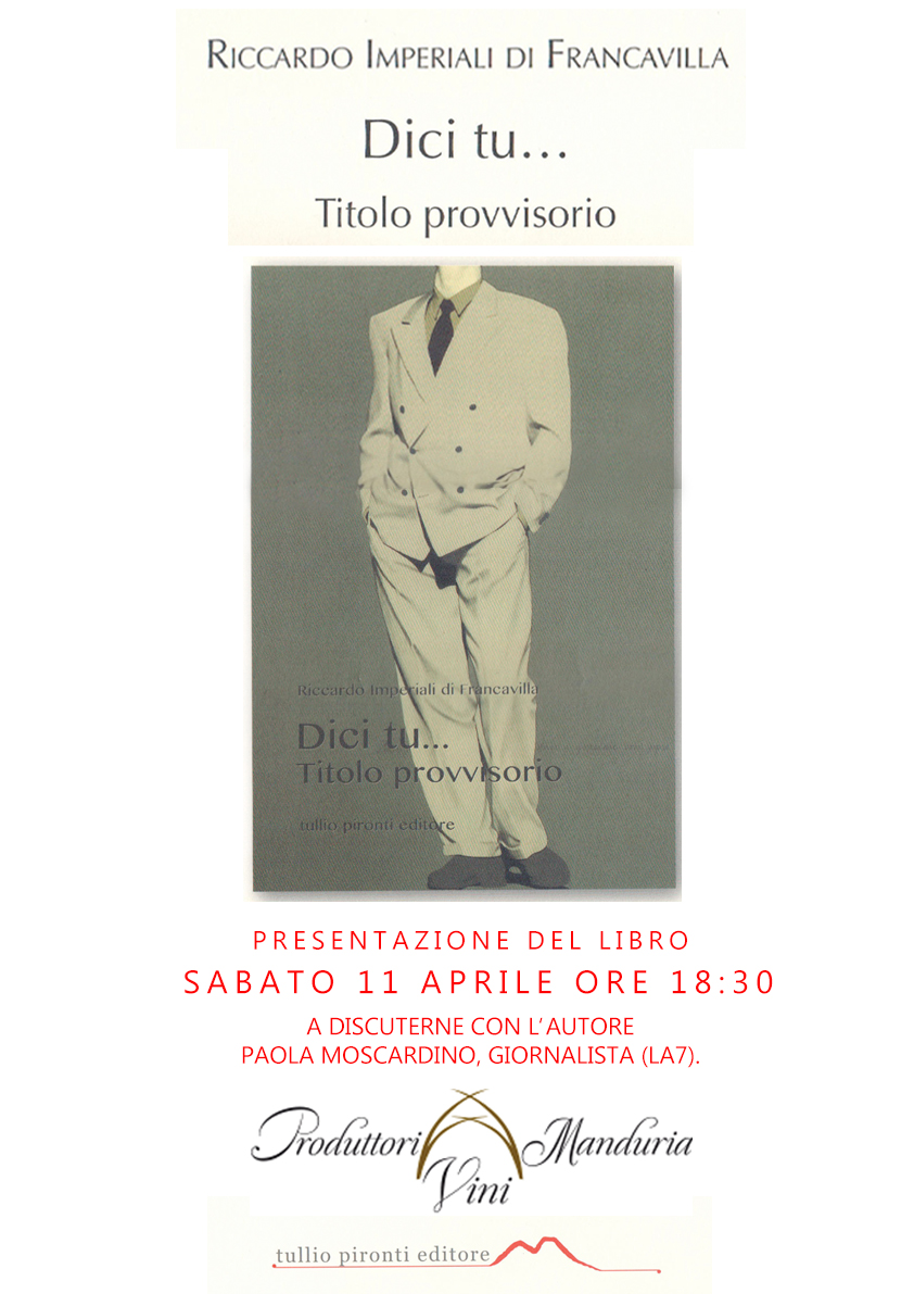Con stile snello e realistico nel descrivere eventi, pensieri e stati d’animo rappresentativi della vita e del suo imprevedibile fluire e una scrittura torrenziale e affabulatoria, “Dici tu..” (edito da Tullio Pironti), rappresenta l’ottimo esordio di Riccardo Imperiali di Francavilla nel mondo della narrativa.