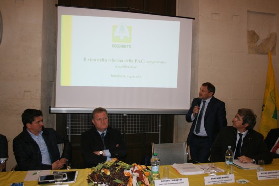 Domenico Bosco, responsabile dell’Ufficio Vitivinicolo di Coldiretti nazionale, ha illustrato, ad una folta platea di addetti ai lavori, le novità relative al mondo enologico introdotte nella riforma della PAC, soffermandosi, in particolare, sui temi della competitività e della semplificazione.