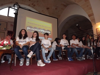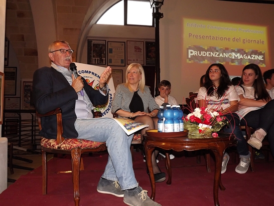 rivolto alla redazione dei piccoli giornalisti dell’istituto comprensivo “Francesco Prudenzano” di Manduria nel corso della cerimonia di presentazione del giornale “Prudenzano Magazine”. A presenziare alla manifestazione il giornalista della sede Rai di Bari Michele Peragine, che non ha lesinato elogi alla redazione della scuola manduriana, guidata dalle docenti di Lingua Italiana, Stefania Maiorano, Alessia Mazza e Lucia My.