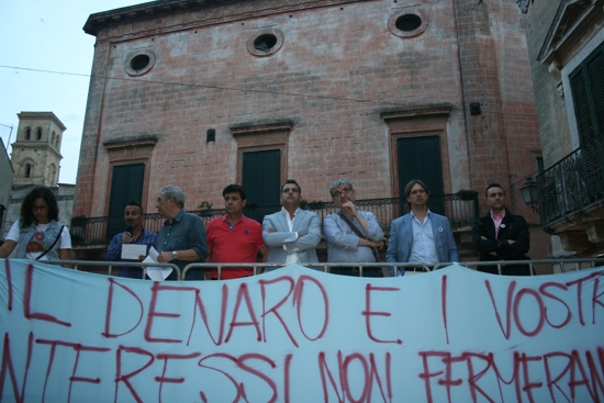 Cristian Casilli, nuovo consigliere regionale del Movimento 5 Stelle di Nardò, ha idealmente unito le battaglie delle comunità dell’area orientale della provincia ionica e della cittadina salentina, in lotta per evitare l’inquinamento del mare e il conseguente depauperamento di una delle principali risorse della zona: il turismo. I grillini eletti alla Regione ridanno vigore a questa battaglia: Casilli è intervenuto insieme a due colleghi di partito (i consiglieri regionali Viviana Guarini, della provincia di Bari, e Marco Galante di Ginosa), all’ennesima mobilitazione contro il recapito in mare dei reflui. Hanno accettato l’invito dei promotori dell’iniziativa anche i consiglieri regionali Luigi Morgante, manduriano, “Area Popolare”, e Giuseppe Turco, torricellese, eletto in una lista civica a sostegno di Michele Emiliano. Sono intervenuti anche i sindaci di Manduria (Roberto Massafra), di Avetrana (Mario De Marco) e di Erchie (Giuseppe Margheriti). Non eccezionale la risposta della gente. Lo slargo adiacente piazza Commestibili si è riempito con qualche centinaia di giovani e adulti.