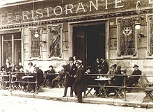 (7) Nella foto risalente al secondo decennio del secolo scorso è riprodotto, insieme ad un collega, nella caratteristica divisa, il sig. Leonardo Mandurino, mio avo materno, clarinetto nella Banda Municipale dell’epoca (collezione privata). La foto d’epoca del Gambrinus di Napoli è tratta da Wikipedia.