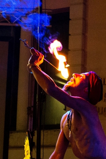 Il terzo spettacolo è quello del “Fakiro Nirname” (di e con Luca Casto), spettacolo di fachirsimo e mangiafuoco di ispirazione indiana: nonostante i vetri, il fuoco, i chiodi, gli spilloni, la sfida della mente sul corpo, lo spettacolo è leggero e delicato, una favola vissuta ad occhi aperti!