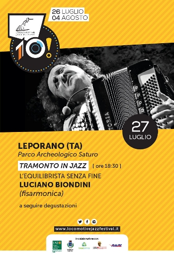 Festival, evento consolidato nel panorama regionale (e non solo) che quest’anno taglia il traguardo della sua decima edizione. E, per l’occasione, sarà il Parco Archeologico di Saturo (marina di Leporano, Taranto) ad ospitare una delle tappe del prestigioso evento, l’unica per l’intero capoluogo ionico.Ed è grande attesa per il concerto “Tramonto in Jazz” in programma lunedì 27 luglio a partire dalle 18.30 con ingresso completamente gratuito. Suggestivo per il pubblico sarà il connubio tra spettacolo, natura, mare e archeologia, lasciandosi cullare dalle note di Luciano Biondini alla fisarmonica e Raffaele Casarano al sax. Sarà un vero e proprio concerto sull’erba: per gli artisti infatti niente palco, ma un contatto diretto con la gente, seguendo il fil rouge dell’edizione 2015 “L’Equilibrista senza fine”, che evoca continuità e improvvisazione, in un crescendo di emozioni. Tutto questo, all’ombra della Torre Costiera del XVI secolo e delle terme pubbliche della villa di età romana che rappresentano una parte dell’inestimabile patrimonio archeologico del Parco. Non a caso, quest’anno il Festival esce dai confini tradizionali e coinvolge la Puglia con un’edizione speciale: sei date itineranti e quattro a Lecce sotto il segno del jazz, scegliendo come palcoscenico scenari naturali e beni architettonici per sensibilizzare alla tutela del paesaggio e delle bellezze del territorio, frutto della collaborazione con il FAI – Fondo Ambiente Italiano.